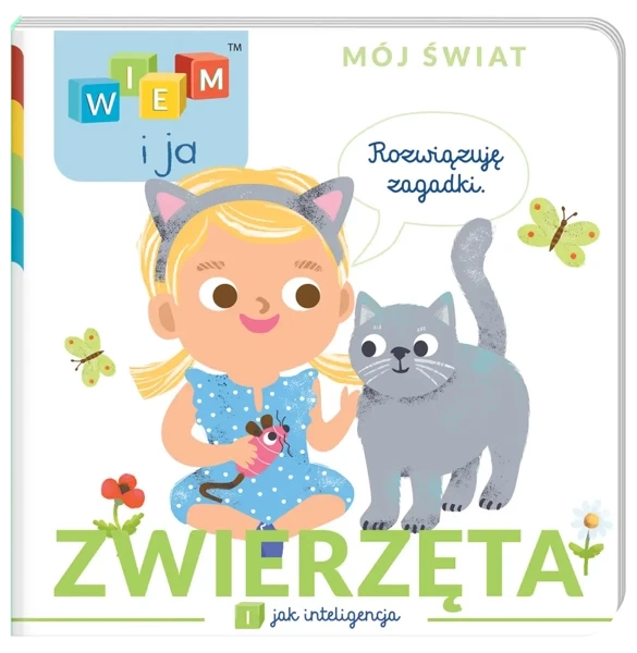 Edukacyjna książka Wiem i ja!. Zwierzęta z serii Mój Świat to książka pełna zagadek. Dzieci je kochają! Główna bohaterka Emilka opowiada o ulubionych zwierzętach. Jej pytania bywają podchwytliwe. Na szczęście na każde pytanie znajdzie odpowiedź pod okienkami.. Sympatyczne i kolorowe zwierzaki oraz odrobina humoru sprawią, że mały czytelnik z chęcią opowie innym poznane zagadki.