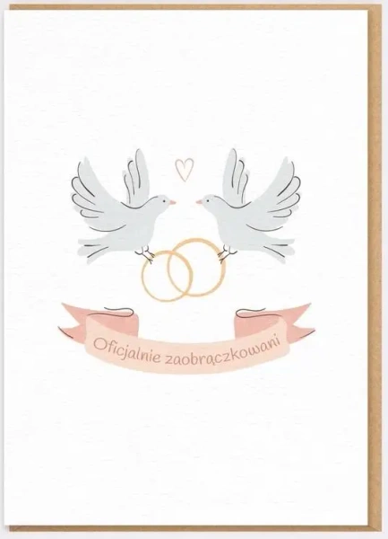 Przedstawiamy Wam naszą oryginalną kartkę pt. Oficjalnie Zaobrączkowani. Jest to doskonały sposób na wyrażenie swoich serdecznych życzeń parze młodej, a także idealny dodatek do prezentu ślubnego.