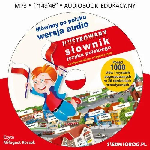 Ten wartościowy audiobook edukacyjny dla dzieci uczących się języka polskiego jest uzupełnieniem publikacji książkowej o tym samym tytule. Aby w pełni wykorzystać walory edukacyjne audiobooka należy go wykorzystywać razem z książką. Książkę Mówimy po polsku. Ilustrowany słownik języka polskiego można kupić w każdej księgarni internetowej, także na stronie wydawnictwa Siedmioróg