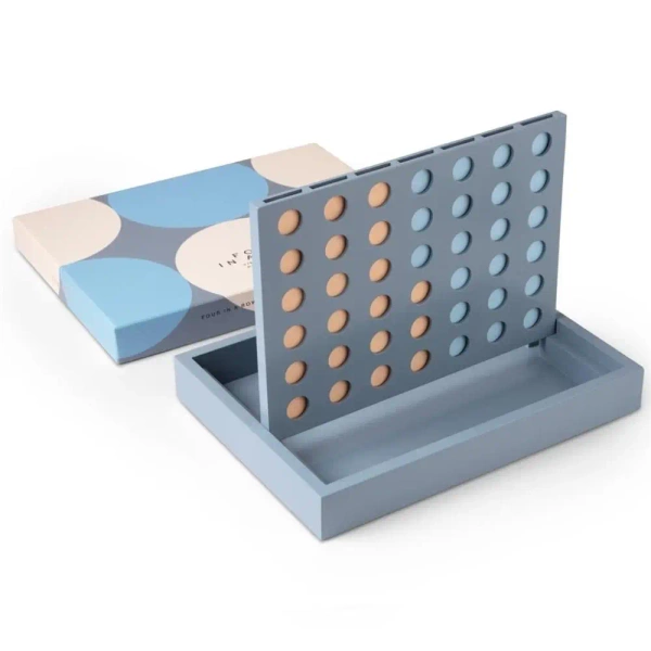 "Cztery w rzędzie" to nie tylko zabawa. Ten eleganckie dodatek do Twojego wnętrza wyróżnia się pięknym designem, który idealnie komponuje się z elementami nowoczesnej estetyki. Gdy nie jesteś w trakcie gry, możesz po prostu położyć grę obok ulubionych magazynów o modzie.