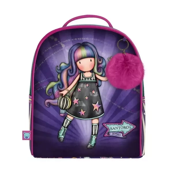 Zaprojektowany z myślą o wygodzie i stylu, mały plecak od Gorjuss z serii Up and Away łączy w sobie elementy lunaparku, takie jak fajerwerki, kolorowe girlandy i cukrową watę, doładowując codzienną rutynę nutą zabawy. Kontrastujące odcienie fioletu nadają mu wyjątkowego charme'u, podkreślając artystyczną grafikę przedstawiającą dziewczynkę Gorjuss.