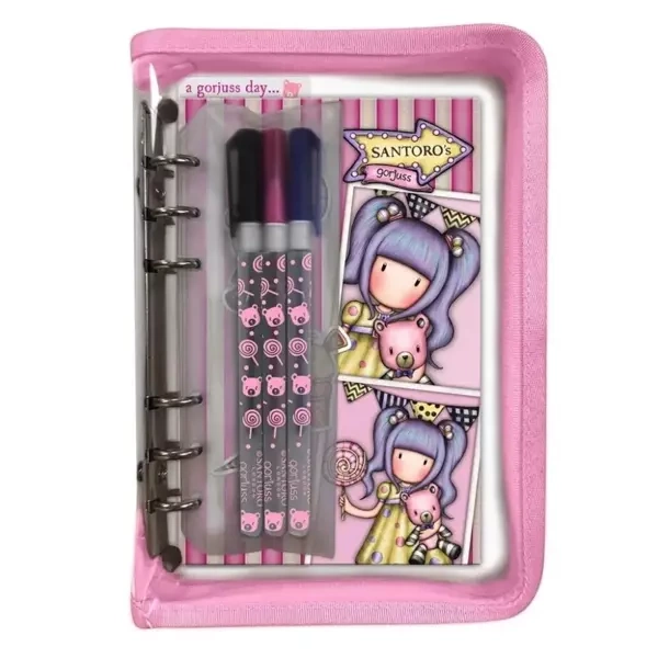 Zestaw First Prize od Gorjuss to wyjątkowy organizer dla każdego szkolnego entuzjasty. Dekorowany jest rysunkiem dziewczynki Gorjuss ze słodkim miśkiem w tle. Design produktu jest inspirowany kolorystyką liliową oraz dodatkami przypominającymi wesołe miasteczko – od balonów, przez popcorn, po lizaki i watę cukrową.W skład zestawu wchodzą: