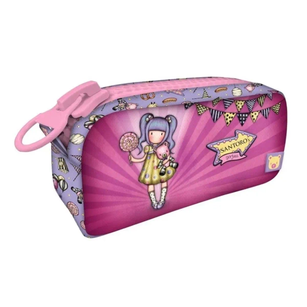 Zapraszamy do odkrycia niezwykłego piórnika z serii First Prize, który charakteryzuje się unikalnym designem. Wydobywa spod tła w kolorze liliowym, dziewczynkę Gorjuss z rozkosznym misiem. Piórnik dodatkowo urozmaicony jest grafiką z lunaparku - balonami, popcornem, cukrową watą, lizakami.