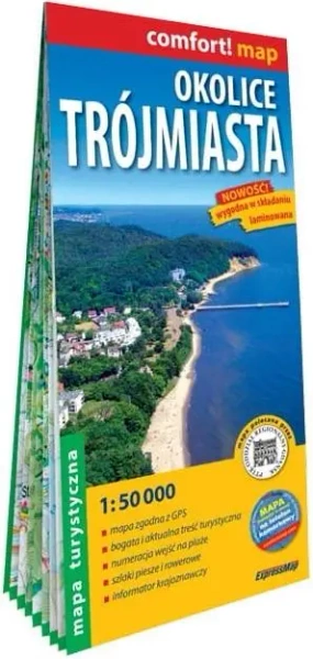 Dwustronnie laminowana, wygodna w składaniu mapa turystyczna okolic Trójmiasta obejmuje swoim zasięgiem obszar od Wejherowa po Kartuzy, Pruszcz Gdański i ujście Wisły w Mikoszewie. Publikacja została opracowana we współpracy z doświadczonymi krajoznawcami z regionu.