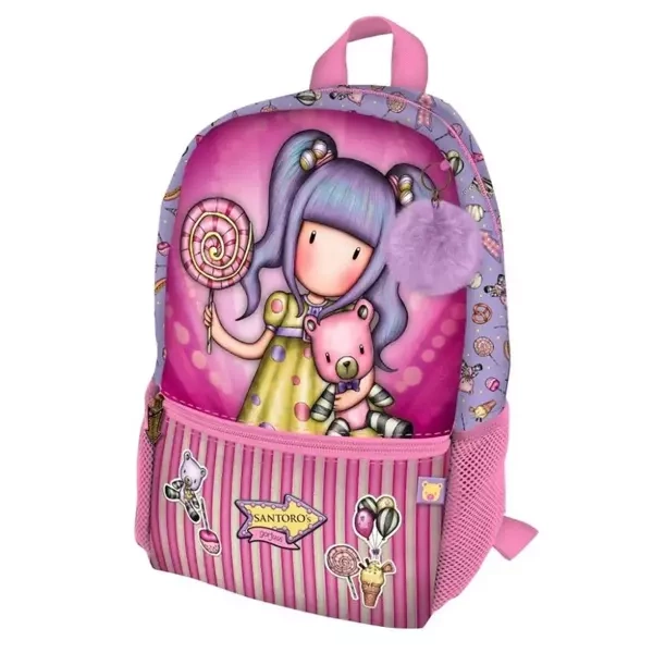 Prezentujemy niewielki plecak z wyjątkowej serii First Prize od Gorjuss. Charakterystyczne i wyraziste motywy, które znalazły zastosowanie w tym modelu to między innymi sympatyczna dziewczynka Gorjuss w towarzystwie pluszowego misia, wszystko to na delikatnym liliowym tle. Akcesoria związane z lunaparkiem, takie jak balony, popcorn czy lizaki, dopełniają całość.