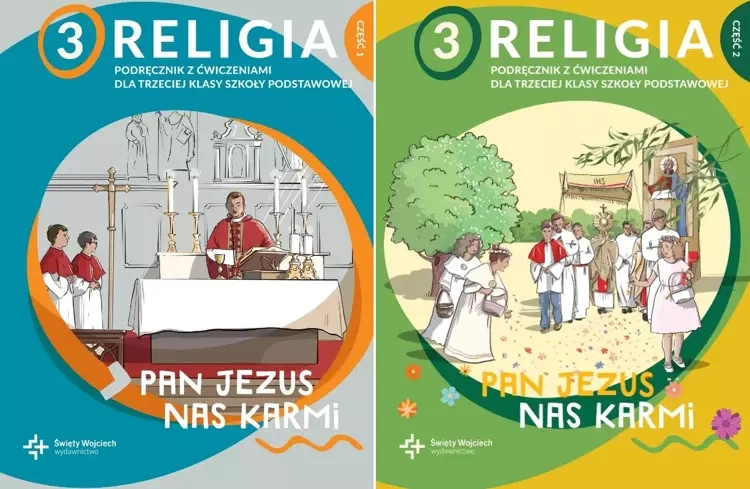 Podręcznik do nauczania religii rzymskokatolickiej na terenie całej Polski, z zachowaniem praw biskupów diecezjalnych, przeznaczony dla klasy III szkoły podstawowej, zgodny z programem nauczania. Podręcznik z ćwiczeniami dla klasy 3 szkoły podstawowej Pan Jezus nas karmi został opracowany zgodnie z wymogami zawartymi w nowej podstawie programowej „Podstawa programowa katechezy Kościoła katolickiego w Polsce” z 9 czerwca 2018 roku i jest zgodny z programem nauczania. Składa się on z dwóch części podzielonych na rozdziały (łącznie 66 katechez). Spis treści: Pan Jezus daje nam swój Kościół Spotykamy się po wakacjach Kościół głosi Ewangelię Święty Paweł pierwszym misjonarzem Chrześcijanie dzielą się chlebem i miłością Święty Tarsycjusz i jego posługa Chrześcijanie budują kościoły Moja obecność w Kościele Kościół jest naszym domem Moja parafia Pan Jezus chce z nami rozmawiać Pan Jezus uczy nas Modlitwy Pańskiej Poznajemy modlitwy Starego Testamentu Maryja jest nauczycielką modlitwy Maryja wychwala Pana Boga u Świętej Elżbiety Pan Jezus mówi do mnie w pięknie liturgii Gesty liturgiczne i ich znaczenie Modlę się wspólnie z innymi w Kościele Świętuję niedzielę z rodziną Jak modlą się święci? Pan Jezus nas prowadzi Przykazania Boże – wprowadzenie Wierzę, ufam, kocham – pierwsze przykazanie Boże Szanuję imię Boga – drugie przykazanie Boże Uczestniczę w niedzielę i święta we Mszy Świętej – trzecie przykazanie Boże Kocham rodziców, szanuję starszych – czwarte przykazanie Boże Szanuję życie swoje i innych – piąte przykazanie Boże Mam czyste ciało i duszę – szóste przykazanie Boże Szanuję rzeczy swoje, cudze i wspólne – siódme przykazanie Boże Mówię prawdę – ósme przykazanie Boże Dziewiąte przykazanie Boże ostrzega przed pożądaniem Nie muszę mieć wszystkiego – dziesiąte przykazanie Boże Dziesięć słów – podsumowanie Przykazanie miłości Katechezy okolicznościowe Odmawiam różaniec Pomagam zmarłym moją modlitwą Oczekuję ze Świętym Józefem narodzin Pana Jezusa – Adwent Świętuję z pasterzami i królami narodziny Pana Jezusa