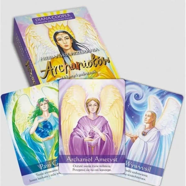 Karty archanielskie - otwórz się na anielskie przesłania Czy wiedziałeś, że w każdej chwili możesz skorzystać z pomocy aniołów i przewodników duchowych? Anioły mogą zrobić dla ciebie wszystko, o ile służy to twojemu najwyższemu dobru. Mogą cię uzdrowić, odpowiadać na twoje pytania, chronić, dawać mądrość, przenieść cię do wyższej częstotliwości i pogłębić twój rozwój duchowy. W jaki sposób skorzystać z anielskiego wsparcia? Pomogą ci w tym te wyjątkowe karty archanielskie i dołączony do nich praktyczny przewodnik! Poznaj przesłanie anielskie - 44 karty z wizerunkami najpotężniejszych archaniołów Diana Cooper, specjalistka od kontaktów z aniołami oraz przewodnikami duchowymi, stworzyła unikalną talię, która pomoże ci połączyć się z 44 najpotężniejszymi archaniołami. Archanioł Gabriel, Michał, Metatron, Rafael, Uriel, Zadkiel, Chamuel, Jeremiel czy Samael, tylko czekają, by ci pomóc. Wystarczy, że wyciągniesz jedną z anielskich kart, a zilustrowany na niej anioł pojawi się u twojego boku. Dotknie cię i zaoferuje swoją pomoc. Gdy przeczytasz uważnie przesłanie z karty i rozważysz jej wskazówki, anioł pozostanie z tobą na dłużej. Możesz również umieścić wybraną kartę przy swoim łóżku, wtedy anioł będzie pracować z twoim duchem nawet podczas snu. Łączenie się z aniołami jest doskonałym sposobem na pogłębienie rozwoju duchowego. Weź do ręki karty archanielskie Karty anielskie dadzą ci głębsze połączenie z całym królestwem archaniołów, a także niemalże stały dostęp do ich mądrości. Ta, złożona z 44 kart, talia zapewni ci przewodnictwo duchowe, ochronę i uzdrowienie. Wystarczy, że zadasz pytanie i wybierzesz jedną z kart, by zyskać odpowiedź i boską pomoc. Każda z nich jest pięknie ilustrowana, emanuje blaskiem, nadzieją i inspiracją, która otacza archanioły, anioły i serafiny. Emituje radosną i podnoszącą na duchu energię. W dołączonym do talii podręczniku znajdziesz nie tylko wskazówki dotyczące korzystania z kart, wróżb anielskich i odpowiedzi na pytania takie jak, czy każdy z nas posiada osobistego anioła stróża. Znajdziesz tu przede wszystkim szczegółowe opisy każdego z 44 archaniołów widniejących na kartach. Odkryjesz, jakimi mocami dysponują, co symbolizuje ich pojawienie się oraz jakie wskazówki chcą ci przekazać. Wróżby anielskie - wypróbuj odczyt z trzech kart i zyskaj odpowiedź na swoje pytanie! Te wyjątkowe karty duchowe doskonale sprawdzą się nie tylko jako wyrocznia, której możesz zadać pytanie, aby otrzymać odpowiedź lub wskazanie kierunku. Możesz używać ich również do wróżenia lub jako talizman - nosząc wybranego archanioła zawsze przy sobie. Doskonałym sposobem otrzymania wskazówek od archaniołów jest wróżba z trzech kart: - Umieść pierwszą z nich po lewej stronie. Ta karta reprezentuje przeszłość. - Drugą umieść na środku. To twoja obecna sytuacja. - Umieść trzecią kartę po prawej stronie. Ta karta reprezentuje przyszły wynik. - Przeczytaj je tak, jak pojedynczą kartę, ale pamiętaj o ich pozycji na twojej osi czasu. - Pamiętaj, aby podziękować aniołom, które do ciebie przyszły. Wykorzystaj mądrość archaniołów w codziennym życiu!