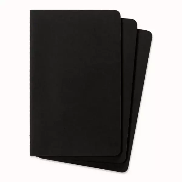 - Prezentowany komplet trzech zeszytów Moleskine Cahier Journals L (13x21cm) w kratkę, utrzymany w eleganckim kolorze czarnym, składa się z łącznie 80 stron.