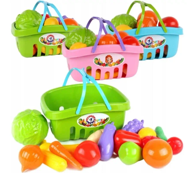 Zestaw składa się z 17 różnorodnych elementów, przede wszystkim ożywionych i wesołych owoców oraz warzyw. Każda z części jest wytworzona z materialów najlepszej jakości, gwarantujących ich bezpieczeństwo i trwałość.