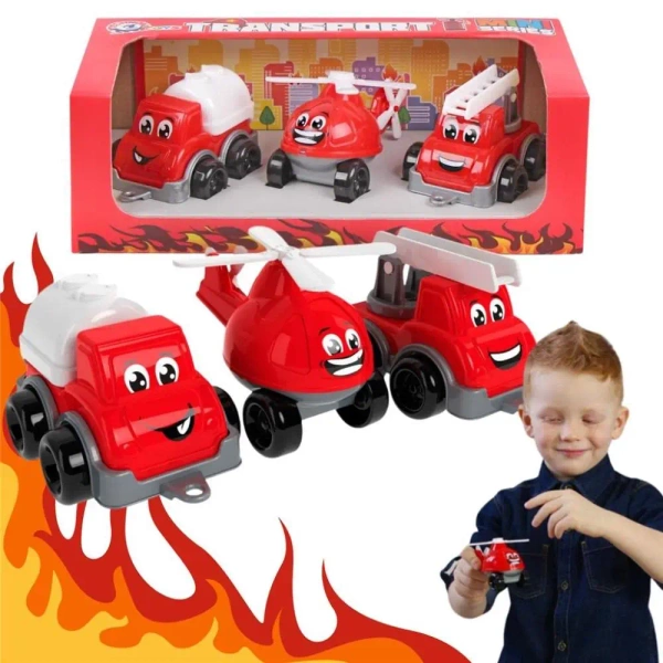 Zestaw "Transport Mini TechnoK" składa się z trzech pojazdów niezbędnych w pracy straży pożarnej - helikoptera, cysterny oraz wozu strażackiego. Wszystkie elementy wykonane są z wysokiej jakości tworzywa sztucznego, co sprawia, że są trwałe i bezpieczne dla dzieci. Prezentowany komplet zapakowany jest w jasne opakowanie typu pudełko upominkowe, dzięki czemu można wręczyć go jako prezent.