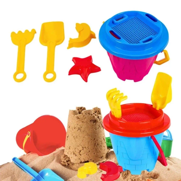 Prezentujemy komplet przeznaczony do gier na piasku. W skład zestawu wchodzi: wiaderko, łopatka, grabki, dwie różne foremki oraz sito. Dzięki temu maluchy będą mogły tworzyć nieskończoną ilość kształtów oraz konstrukcji.
