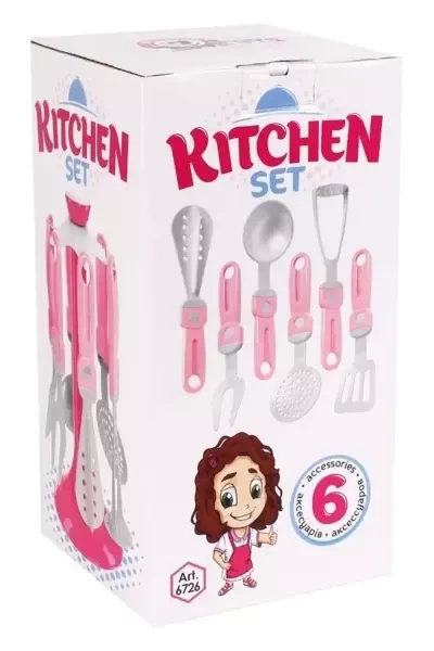 W skład zestawu wchodzą: stojak, chochla, cedzak, duży widelec, szpatułka, trzepaczka oraz tłuczek. Dzięki różnorodności akcesoriów, dzieci będą mogły eksperymentować z różnymi technikami gotowania, ucząc się przy tym cierpliwości, precyzji i odpowiedzialności.