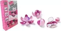 Każda wyjątkowa kuleczka skrywa w sobie miniaturową kosmetyczkę! Dostępne są trzy rodzaje tego produktu, które występują w wielu atrakcyjnych kolorach. Zestaw zakryty w każdej kuli obejmuje cienie do powiek oraz błyszczyk.