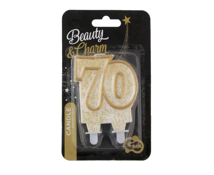 Świeczka liczba 70 urodziny złoty kontur - Godan