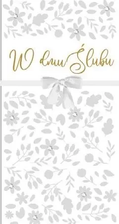 Cechy produktu: zdobiene przynajmniej dwoma różnymi foliami (metaliczne/perłowe/holograficzne), brokatem i dodatkami doklejanymi. Występują w nim również wycięcia laserowe i eleganckie wstążeczki - wszystko zależne od konkretnego wzoru. Wnętrze karnetu jest delikatnie udekorowane, z wyjątkowymi życzeniami dla odbiorcy. W komplecie dołączona jest koperta, idealnie dopasowana kolorystycznie. Okazja to Ślub. Wymiary po złożeniu wynoszą: 11,4 x 21,5 cm.