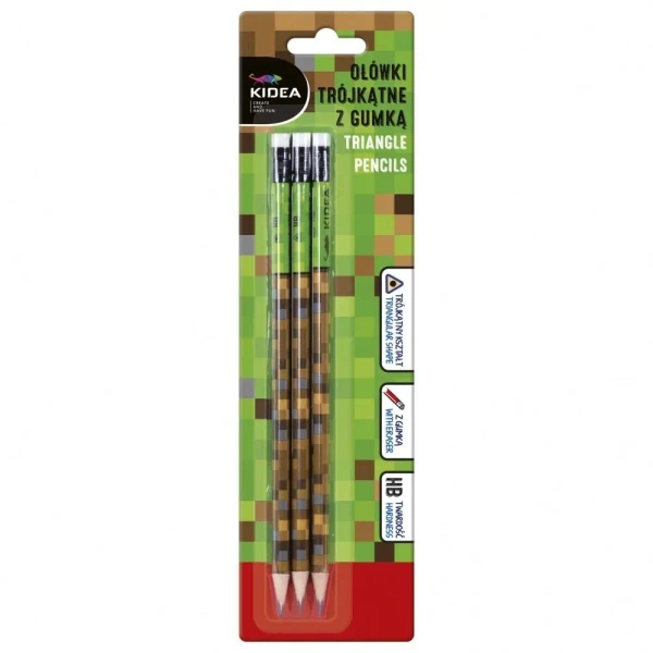 Ołówek trójkątny z gumką z nadrukiem 3 szt. KIDEA