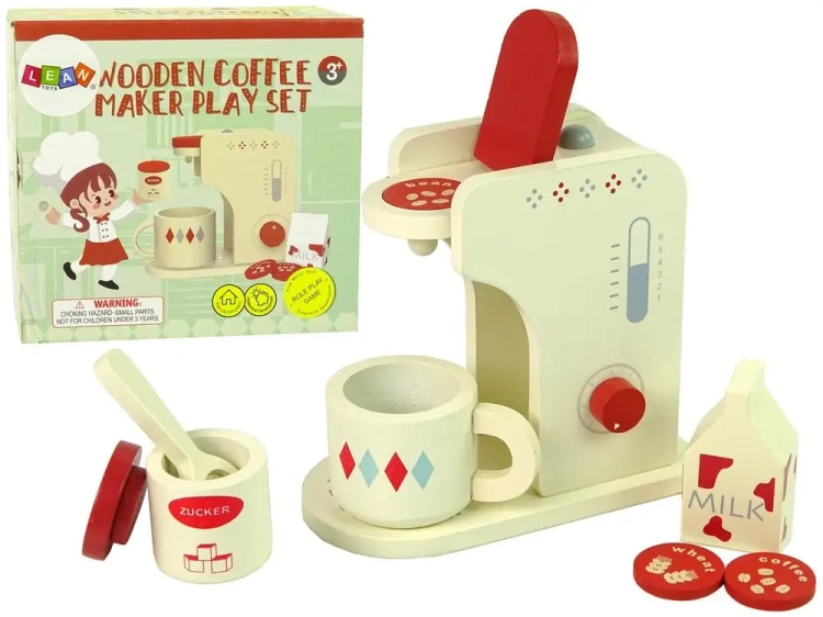 Drewniany ekspres do kawy z akcesoriami - Leantoys