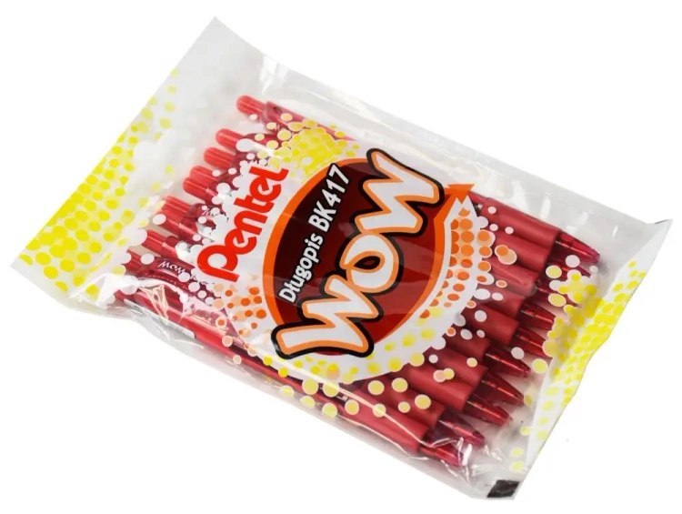 Trwały i wygodny model długopisu WOW BK417 w czerwonym kolorze, stworzony przez markę PENTEL, jest produktem warte uwagi ze względu na swoją nieprzeciętną jakość i przystępną cenę. Wykorzystując najnowocześniejszą technologię, marka oferuje produkt o ekonomicznym charakterze, którego unikalność spotęgowana jest linią pisania o długości aż 1500m. Wspaniała linia pisania tego modelu pozwoli na oszczędność, dzięki czemu biuro będzie mogło zaoszczędzić na kosztach artykułów papierniczych. Długopis WOW BK417, dzięki swojemu funkcjonalnemu wyglądowi, nie tylko jest atrakcyjny dla oka, ale również przyczynia się do zwiększenia efektywności pracy.Niezwykły design