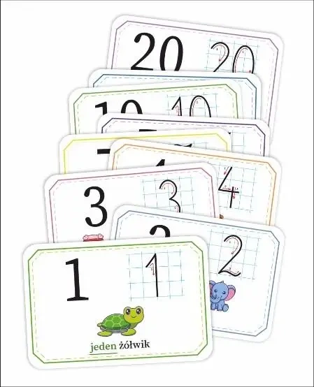 Zestaw zawiera cyfry od 0 do 20, razem aż 21 karty!