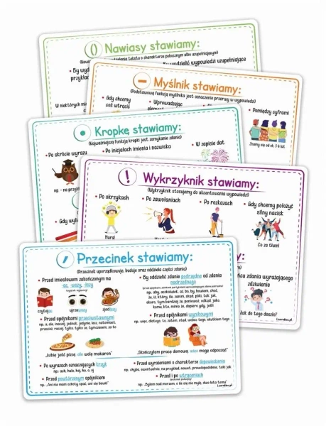 Plansze edukacyjne A4-Znaki interpunkcyjne 5 kart