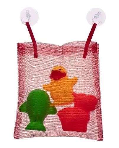 W zestawie znajdują się trzy zabawki oraz siateczka z przyssawkami na zabawki, która pomoże utrzymać porządek w łazience. Kolory zabawek wysyłane są losowo.