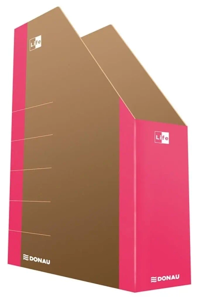 Pojemnik na dokumenty A4 marki Donau to praktyczne i estetyczne rozwiązanie do przechowywania i organizacji papierów oraz dokumentów. Różowa obudowa nadaje unikalnego, wyrazistego wyglądu, będąc doskonałym dodatkiem do każdego biura czy miejsca pracy. Wytrzymała konstrukcja Pojemnik został wykonany z grubości 1,2 mm tektury, co zapewnia trwałość i solidność. Szerokość grzbietu wynosi 80 mm, co umożliwia przechowywanie aż do 800 kartek papieru o gramaturze 80gsm. Ściana grzbietowa Ściana grzbietowa pojemnika została dostosowana do umieszczania opisu, co ułatwia identyfikację zgromadzonych dokumentów. Prosty montaż Składany design pojemnika sprawia, że jest on bardzo łatwy w montażu, nie wymagając złożonych instrukcji. Certyfikat FSC® Znak FSC® gwarantuje, że surowiec użyty do produkcji pojemnika pochodzi z lasów zarządzanych w sposób odpowiedzialny i zgodny z najwyższymi światowymi standardami ochrony przyrody. Symbol ten potwierdza również legalność pochodzenia surowca. Gramatura i kolor Pojemnik charakteryzuje się gramaturą 800g/m2 oraz różowym kolorem, który doda oryginalności każdej przestrzeni pracy. Z kolei pojemnik na dokumenty A4 firmy Donau to praktyczne i stylowe rozwiązanie do przechowywania i porządkowania papierów. Dzięki różowym akcentom będzie doskonale komponować się z wnętrzem biura czy domowej przestrzeni pracy.EAN: 5901503612002