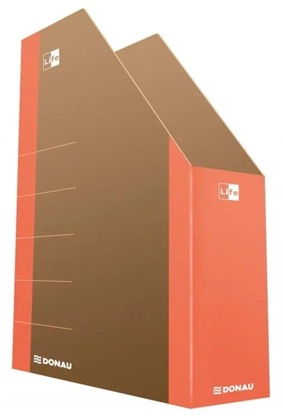 Pojemnik na dokumenty A4 w kolorze pomarańczowym to praktyczny i trwały produkt marki DONAU. Wykonany z grubej tektury o grubości 1,2mm, zapewnia trwałość i wytrzymałość na długie lata użytkowania. Oferuje pojemność do 800 kartek papieru o gramaturze 80gsm, dzięki czemu jest idealny do przechowywania dokumentów i materiałów biurowych.
