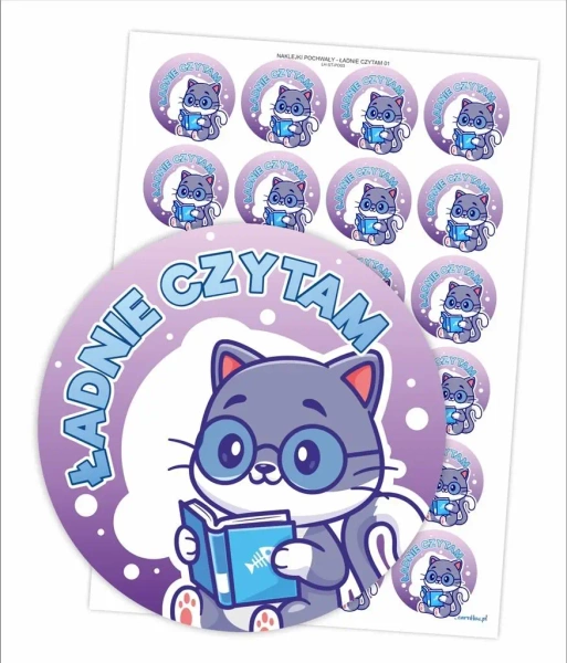Tegoroczna kolekcja naklejek "Doskonale czytam" o średnicy 40 mm, której składnikami są 24 sztuki, to doskonała forma motywowania dzieci do dalszej nauki.