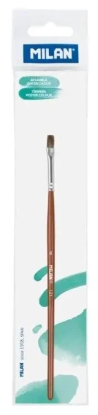 Prezentowany pędzel szkolny z serii 121 to model o numerze 4, z krótkim trzonkiem wykonanym z drewna. Jego skład to połączenie 70% naturalnego włosia koziego i 30% włosia syntetycznego, co zapewnia wysoką jakość i trwałość. Wykończenie pędzla pokryte jest brązowym lakierem, a aluminiowa skuwka nie posiada żadnych spawów, co sprawia, że jest odporna na rdzewienie.