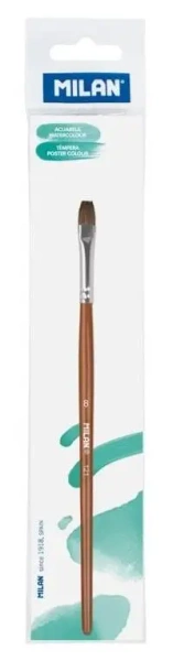 Ten pędzel szkolny płaski nr 8 z serii 121 jest niezwykle praktycznym narzędziem dla młodych artystów. Posiada krótki drewniany trzonek pokryty brązowym lakierem, który nadaje mu eleganckiego wyglądu. Znajdujące się na nim włosie, składające się w 70% z naturalnych kozich włosków i 30% z włókien syntetycznych, jest niezwykle miękkie, co jest idealne dla technik takich jak akwarela, malarstwo wodne i plakaty.