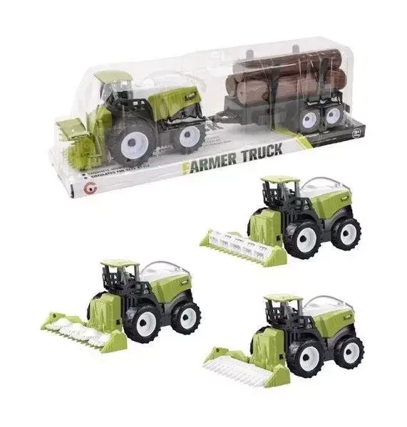 Prezentujemy zabawkę przedstawiającą kombajn, który posiada również maszynę oraz przyczepę. Elementy te można łatwo przyczepiać i odłączać od pojazdu, co sprawia, że zabawa staje się jeszcze bardziej atrakcyjna dla dzieci.