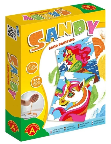 Sandy Piaskowe Malowanki to popularna zabawka, która umożliwia dzieciom tworzenie pięknych ilustracji za pomocą piasku. Polega na odkrywaniu klejących części obrazka przez odsłanianie naciętych elementów, następnie posypując je kolorowym piaskiem zgodnie z wzorem lub wykorzystując własną wyobraźnię.
