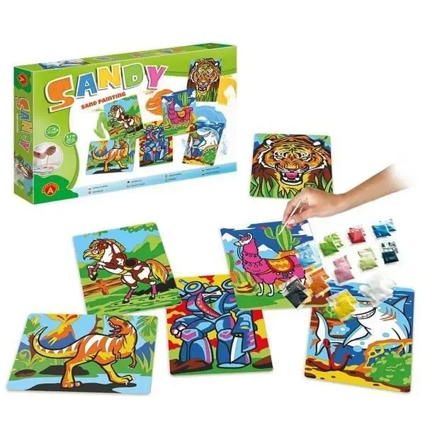 Malowanie piaskiem to ulubiona przez dzieci forma twórczości, która umożliwia stworzenie pięknych ilustracji w prosty sposób. Zabawa polega na odkrywaniu kolejnych naciętych elementów obrazka, by odsłonić klejącą powierzchnię. Następnie odsłonięte elementy są posypywane piaskiem o odpowiednim kolorze, zgodnym z wzorem lub zgodnie z indywidualną wizją dziecka.
