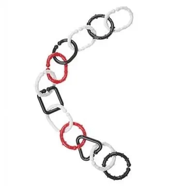 Ogniwa, które znajdziesz w tej ofercie, doskonale sprawdzą się jako elementy łączące oraz mocujące zabawki przy łóżeczku, wózku, czy na macie edukacyjnej. Ich czarno-biała kolorystyka świetnie wpływa na rozwój zmysłu wzroku Twojego malucha. Wypustki o różnej fakturze sprawiają, że ogniwa te mogą być wykorzystane również do ćwiczeń mających na celu rozwój integracji sensorycznej.