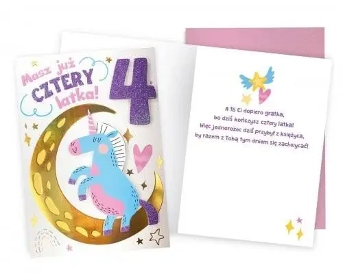 Karnet na czwarte urodziny "Urodziny 4" DKP-038 z serii Dream Cards Plus