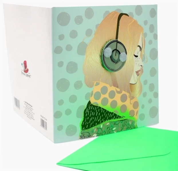 Przedstawiamy karnet z kwadratową kopertą FW-20-113-14, który charakteryzuje się oryginalnym designem. Jego unikalnym elementem jest załączona rozkładana harmonijka z serii Słuchawki.