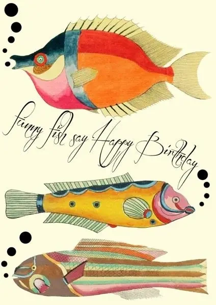 Karnet urodzinowy B6 z kopertą, seria "Ryby" od Madame Treacle
