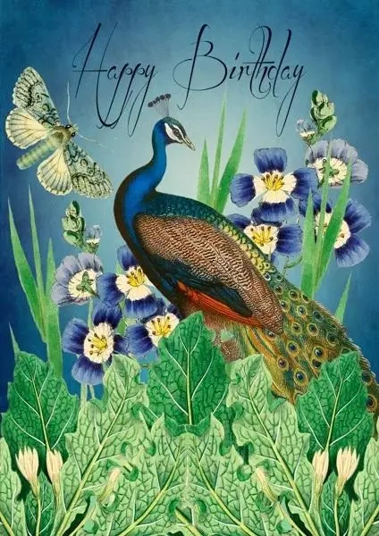 Karnet Urodzinowy B6 Paw z kopertą, stworzony w UK