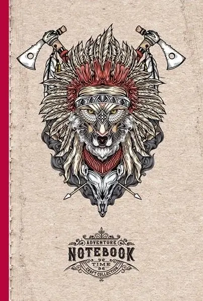 Stylowy Notatnik 143x210 64 kartki w kratkę z trwałym okładem, Indianin Wilk 19308