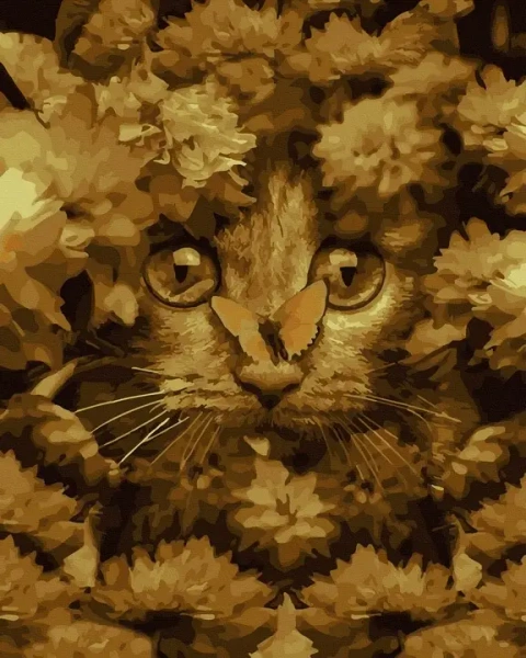 Malowanie po numerach Mały kot w kwiatach - TWOJE HOBBY plakaty