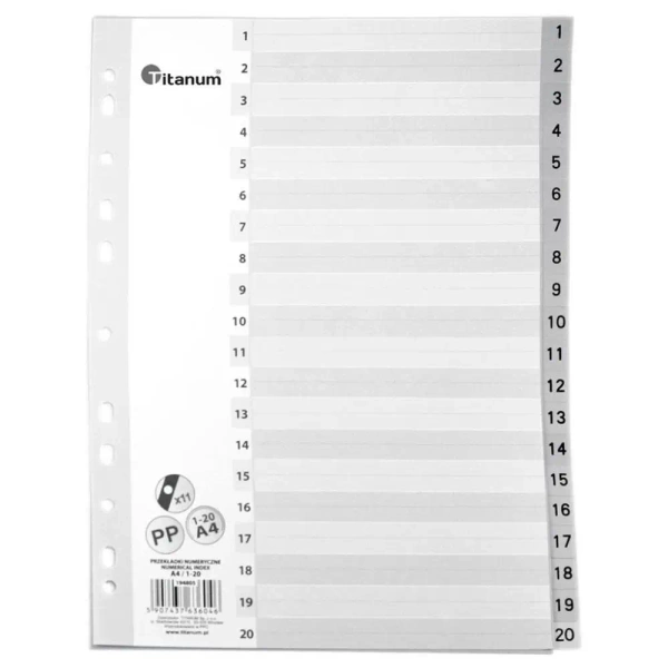 Te wysokiej jakości przekładki A4 marki Titanum to doskonałe rozwiązanie do sortowania i organizacji dokumentów. Wykonane z trwałego i elastycznego polipropylenu, zapewniają długotrwałe użytkowanie.