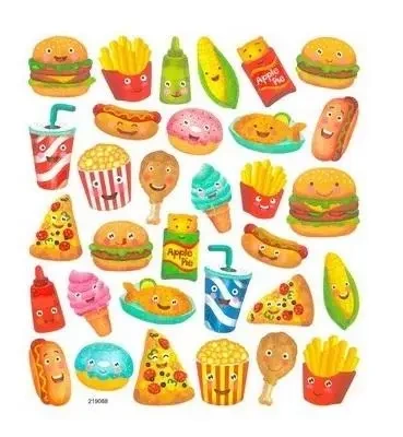 Rozważasz zakup dekoracyjnych naklejek? Przedstawiamy Ci 32 sztuki papierowych naklejek z serii "Przekąski". Wymiary arkusza, na którym znajdują się naklejki, to 15 x 17 cm. Idealnie nadają się na różne powierzchnie, a motyw przekąsek dodaje im uroku. Nie zwlekaj i już teraz zadbaj o swoje codzienne dekoracje!
