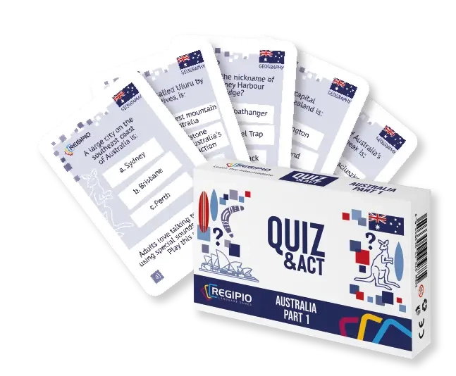 QUIZ & ACT Australia to 50 kart dydaktycznych z pytaniami z wiedzy o Australii. Marzysz o egzotycznej podróży do Australii?