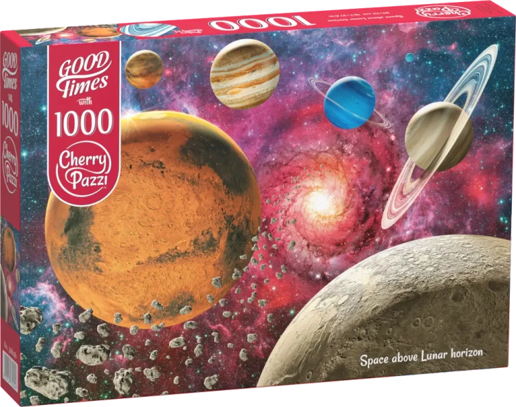 Zapraszamy do odkrycia kosmicznego świata puzzli z serią CherryPazzi! Prezentujemy Wam układankę składającą się z 1000 elementów, która przedstawia przepiękną panoramę Księżycowego horyzontu. Po ułożeniu, całość tworzy imponujący obraz o wymiarach 100 x 70 cm.