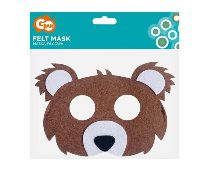 Wykonana z filcu maska przedstawiająca uroczego misia, to świetny sposób na urozmaicenie różnorodnych uroczystości i zabaw. Dzięki swoim wymiarom 18x12cm maska jest łatwa do przechowywania oraz nie sprawia kłopotu z założeniem.