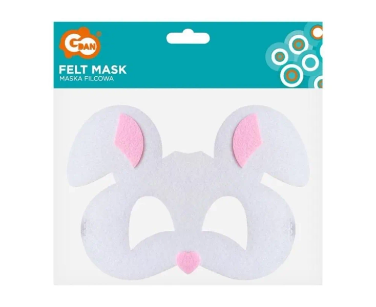 Wykonana z filcu, ta urocza maska w kształcie królika może stać się świetnym dodatkiem na różnego rodzaju imprezach i zabawach tematycznych. Oczywiście, jego wymiary to 18,5x13 cm, dzięki czemu pasuje na większość twarzy.