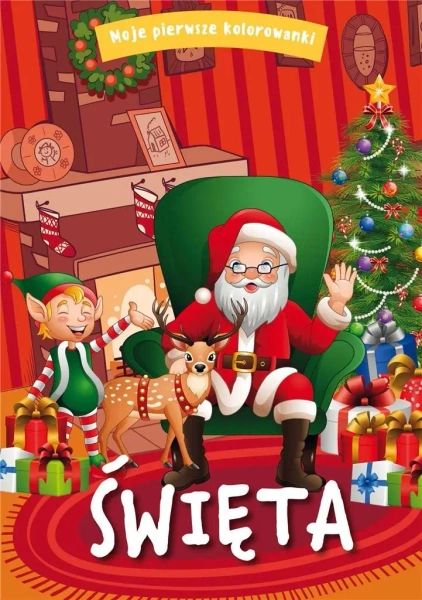 Pierwsze kolorowanki z serii "Moje pierwsze kolorowanki" są zestawem szesnastu stron przeznaczonych do kreatywnego zabarwienia przez maluchy. Zawierają ilustracje do uzupełnienia kolorami w towarzystwie krótkich, ale barwnych tekstów. Malowanie tych obrazków pozwala młodszym dzieciom na rozwijanie zdolności grafomotorycznych, poprawia precyzję ruchów ręki i uczy dokładności. Wśród kolorowanek na święta znajdują się wyjątkowe rysunki związane z tematyką Bożego Narodzenia.