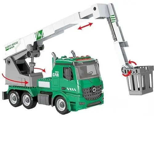 Model pojazdu to auto z napędem mechanicznym typu friction, co oznacza, że nie potrzebuje baterii czy silnika elektrycznego do poruszania się. Ruchome elementy oraz kosz wysięgnika z pewnością zwiększą możliwości zabawy podczas wykonywania wymyślonych przez dziecko scen "prac miejskich".