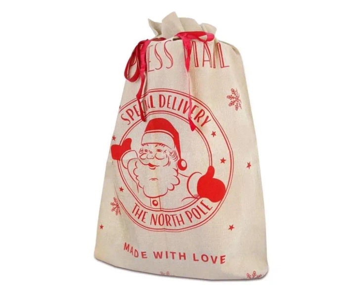 Świąteczny worek z jutowej tkaniny "Mikołaj" o wymiarach 70x100 cm