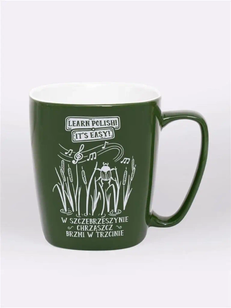 Zielony ceramiczny kubek zdobiony wizerunkiem brzęczącego chrząszcza w trzcinie, to wyjątkowy prezent dla każdego obcokrajowca, albo pamiątka z wizyty w naszym kraju.